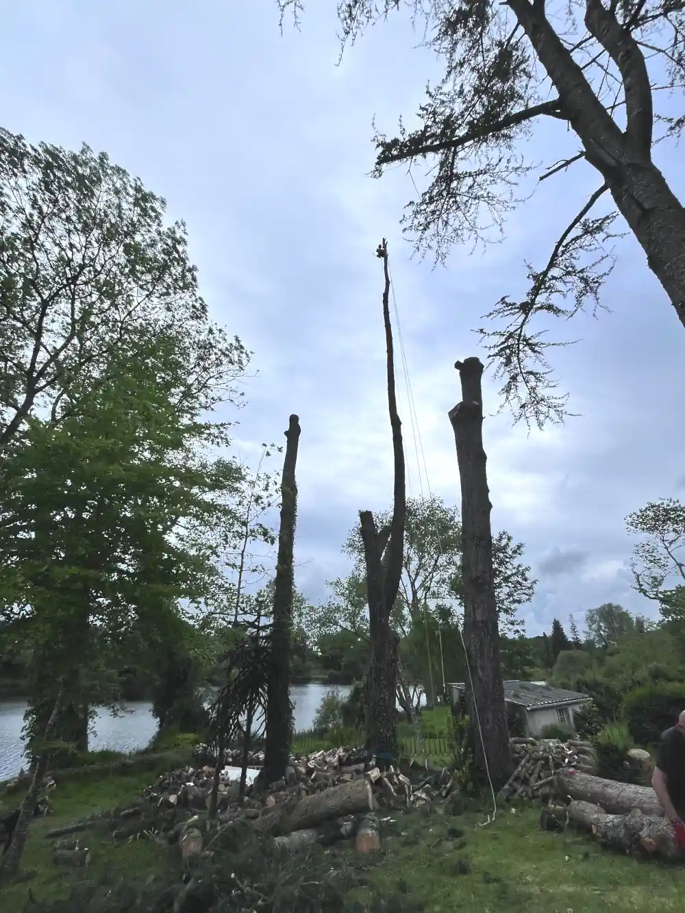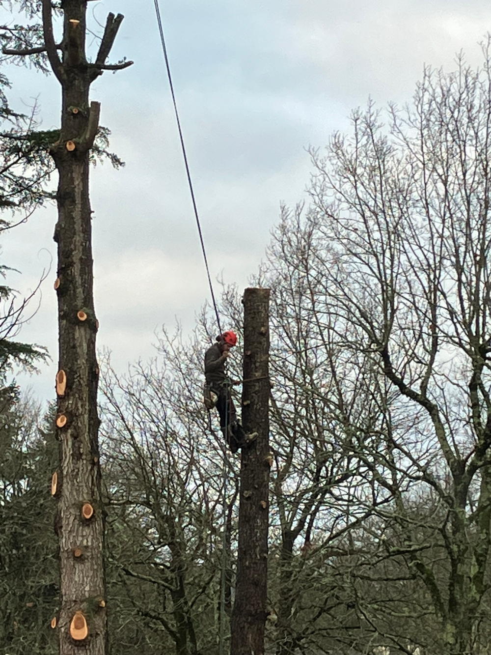 Nous effectuons des travaux d’abattage sur des arbres morts, malades ou des arbres qui manifestent un danger selon sa localisation (à proximité d’habitations, bâtiments…). Lorsque l’abattage en direct n’est pas possible, nous procédons au démontage de l’arbre c’est à dire que nous coupons l’arbre en plusieurs tronçons. Dans certains cas, selon l’emplacement de l’arbre et les structures environnantes à celui-ci, nous utilisons un système de rétention pour contrôler la vitesse de chute et la direction des branches.
